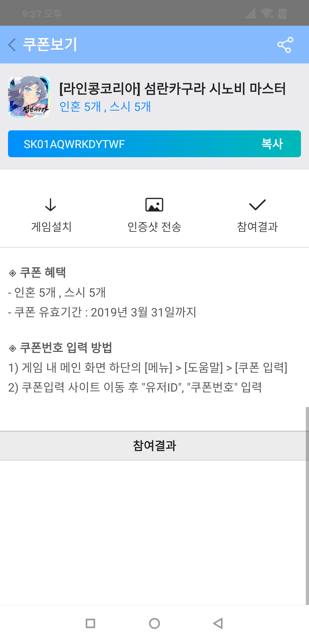 | [모바일게임] 섬란카구라 시노비마스터 사전예약쿠폰 나눔합니다. (0) | 2019.03.31 |