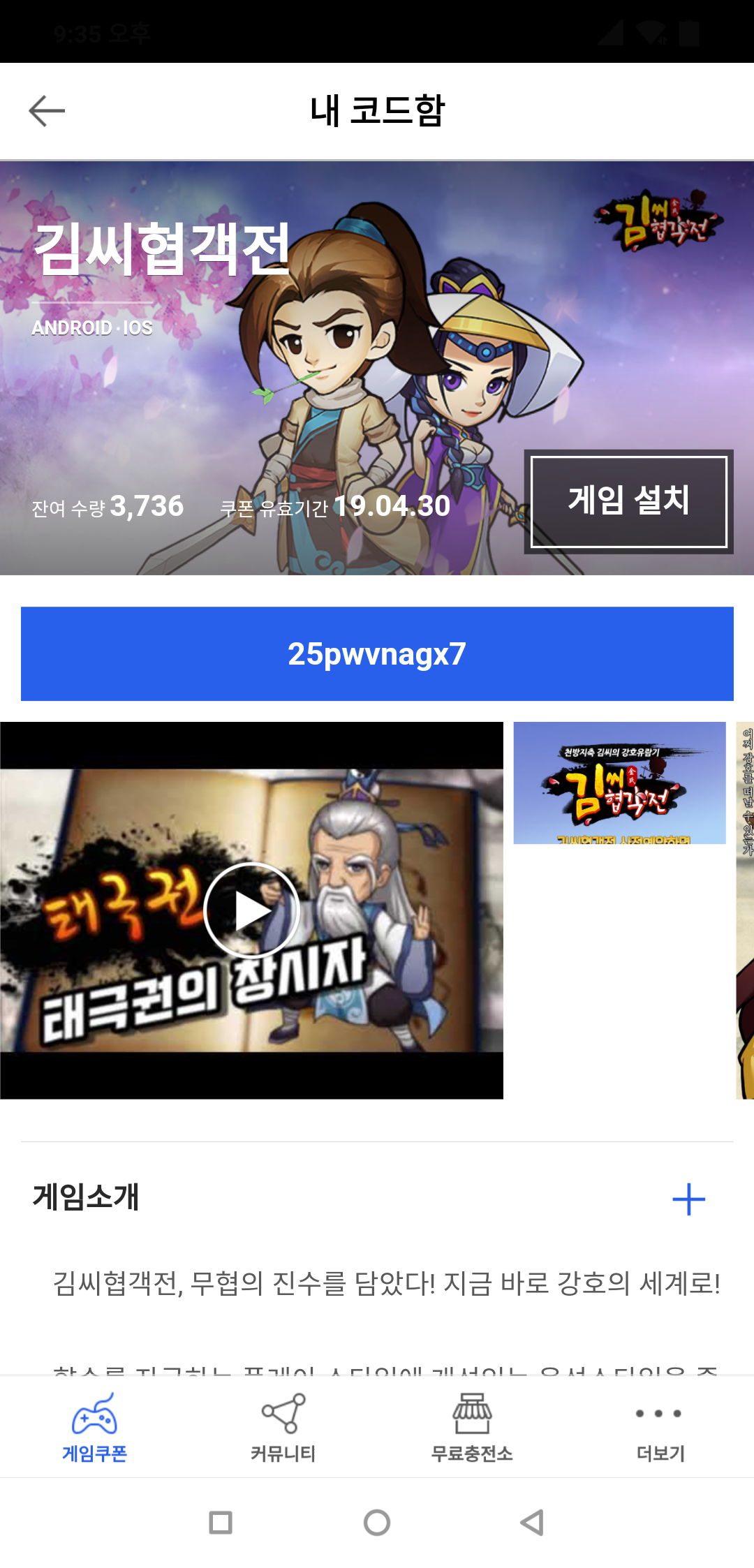 [모바일게임] 김씨 협객전 사전예약쿠폰 나눔합니다.