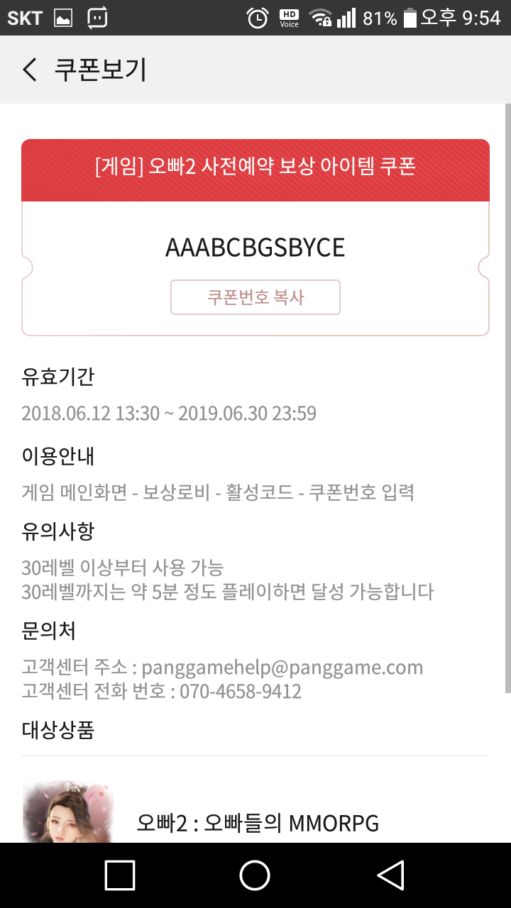 [모바일게임] 오빠2 사전예약쿠폰 나눔합니다.