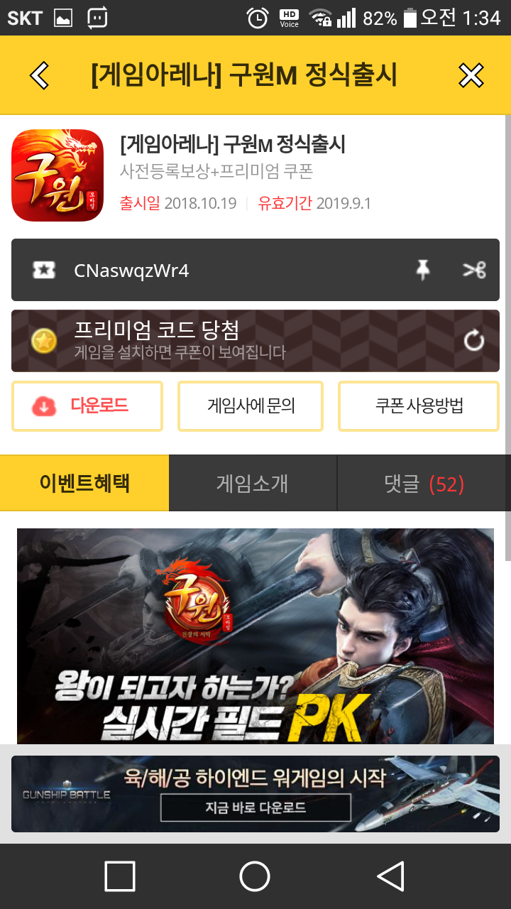 [모바일게임] 구원M 사전예약쿠폰 나눔합니다.