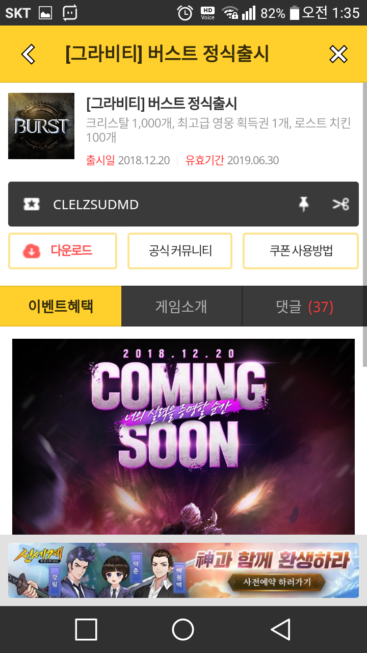 [모바일게임] 버스트 사전예약쿠폰 나눔합니다.