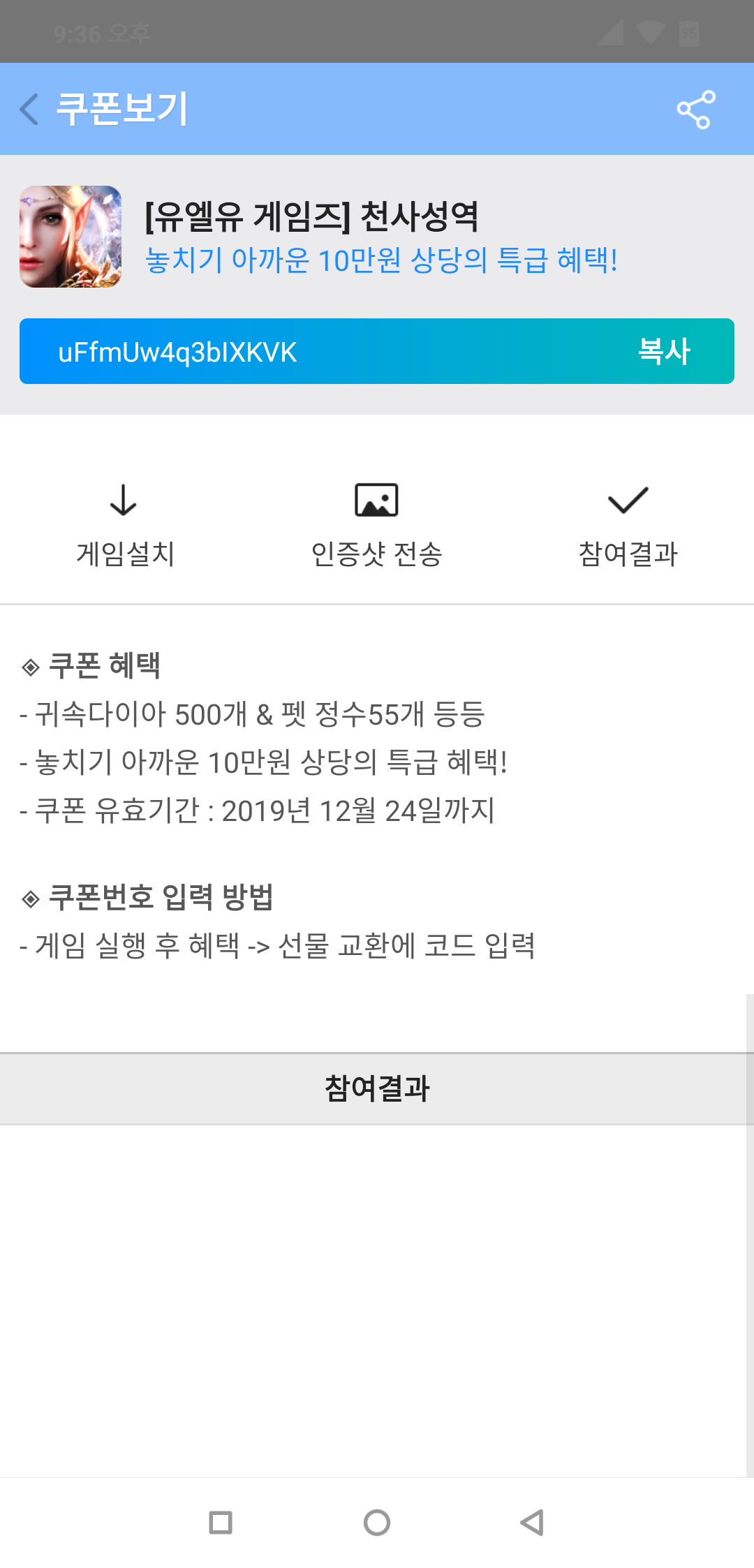 [모바일게임] 천사성역 사전예약쿠폰 나눔합니다.