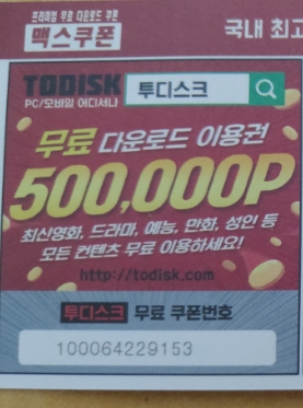 투디스크 50만 포인트 쿠폰 나눔합니다.