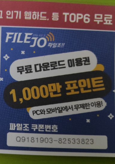 파일조 1000만 포인트 쿠폰 나눔합니다. 두번째